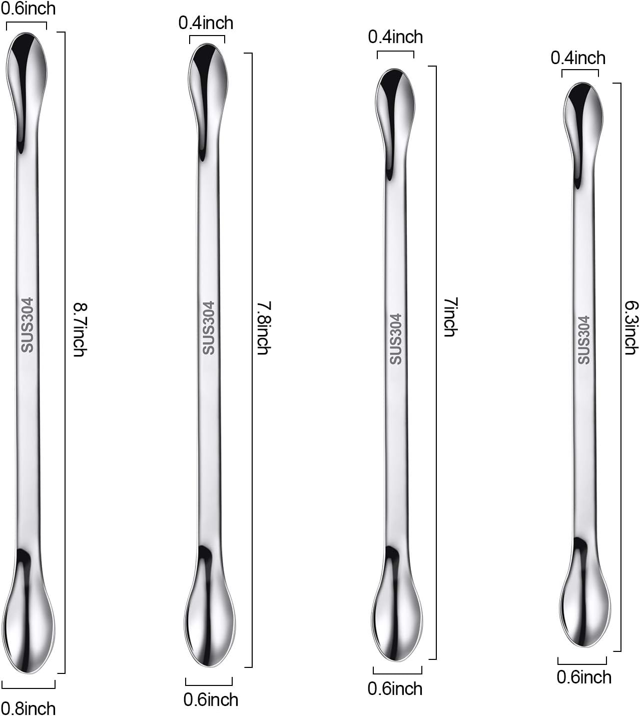 Double-sides design: these square head spatula with a flat or spoon end are mainly for transferring or handling materials, while the pointed head spoon with a scoop or spoon end are convenient to mix ingredients together in deep container