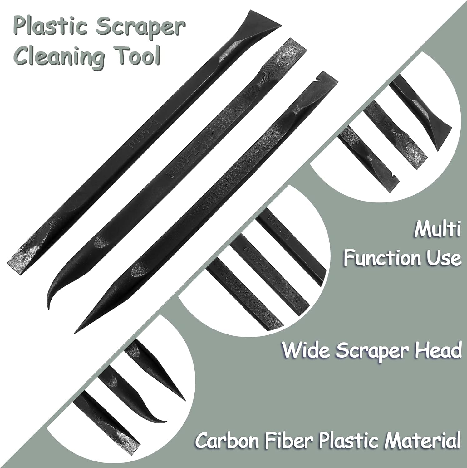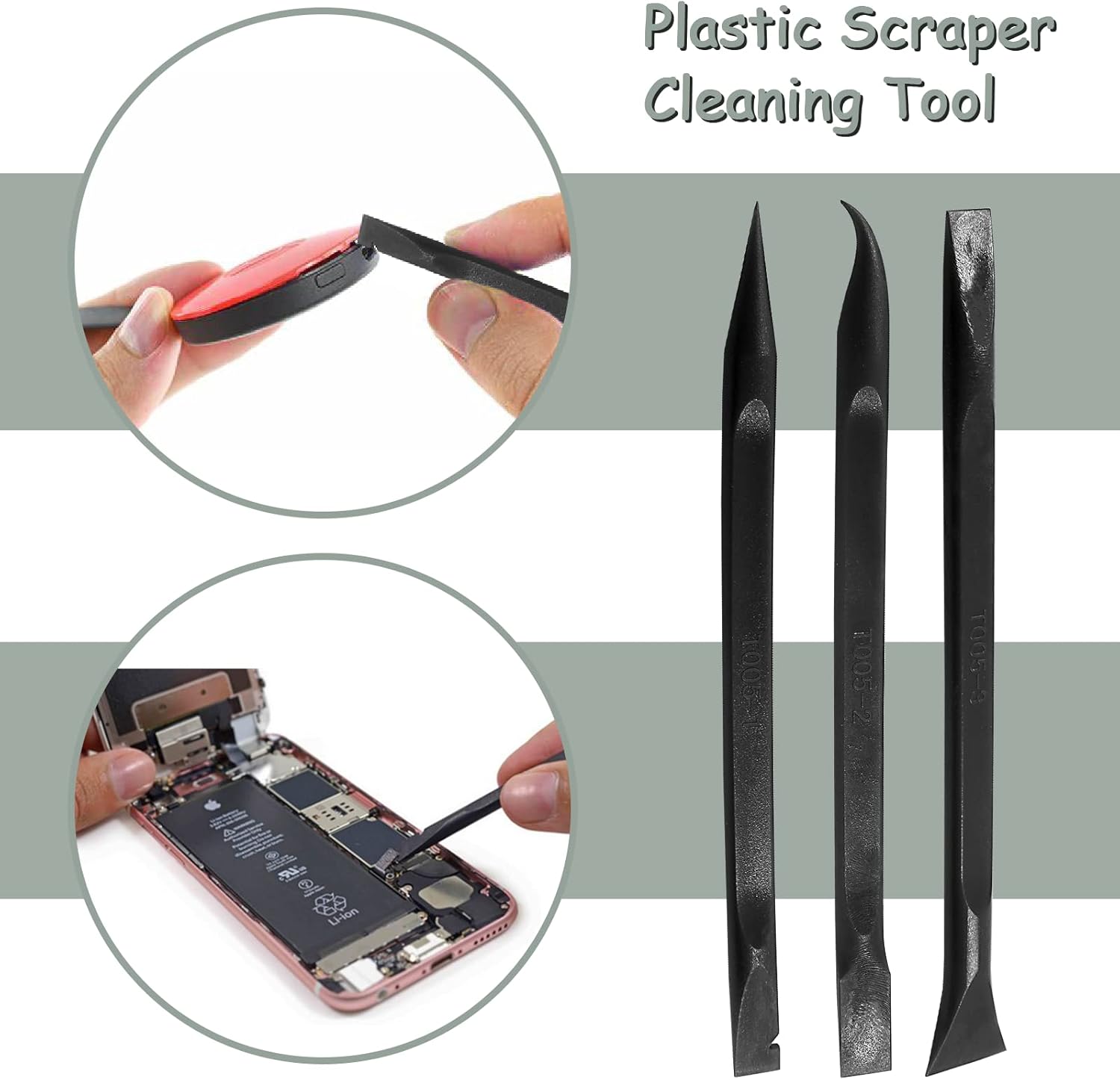 Widely Use: Scratch-free plastic scraper can be used safely on most surfaces, and is generally used to clean crevices, to remove lottery tickets, label stickers, paint, candles, dirt, dry food, soap, etc. It can also be used as an electronic repair tool to pry open cell phones, tablets, LCD monitors, etc.