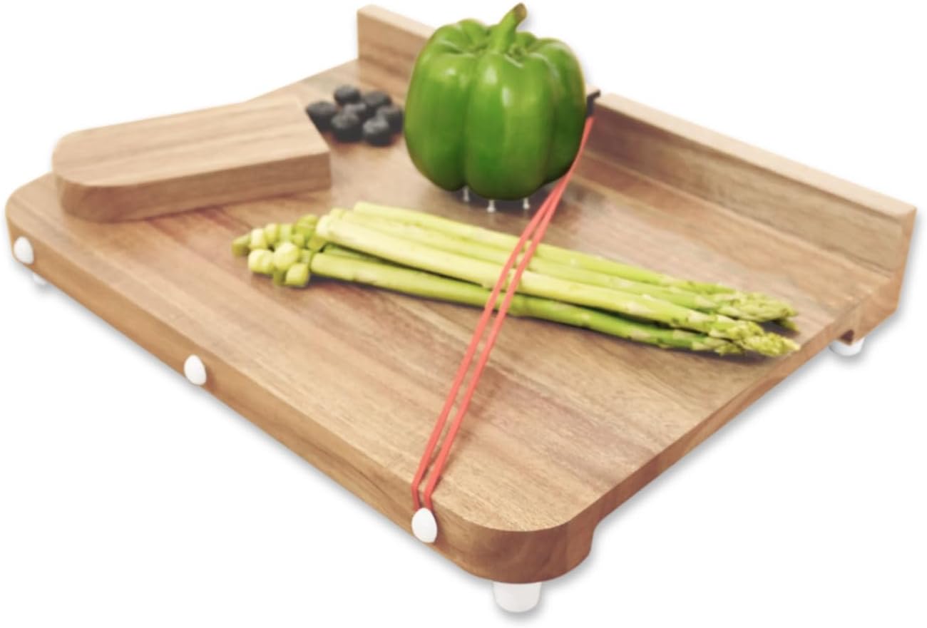 STABLE & NON-SLIP DESIGN — One-Handed Cutting Board features non-slip silicone feet and durable acacia hardwood for a secure, wobble-free cutting surface, ideal as adaptive equipment for one-handed use.