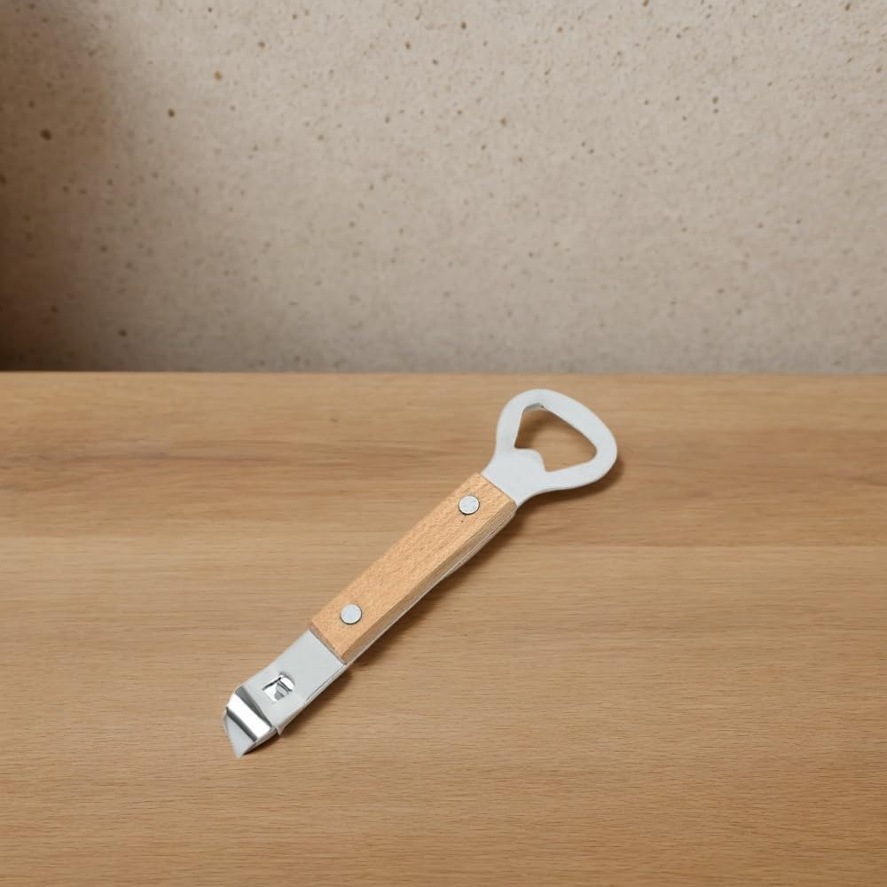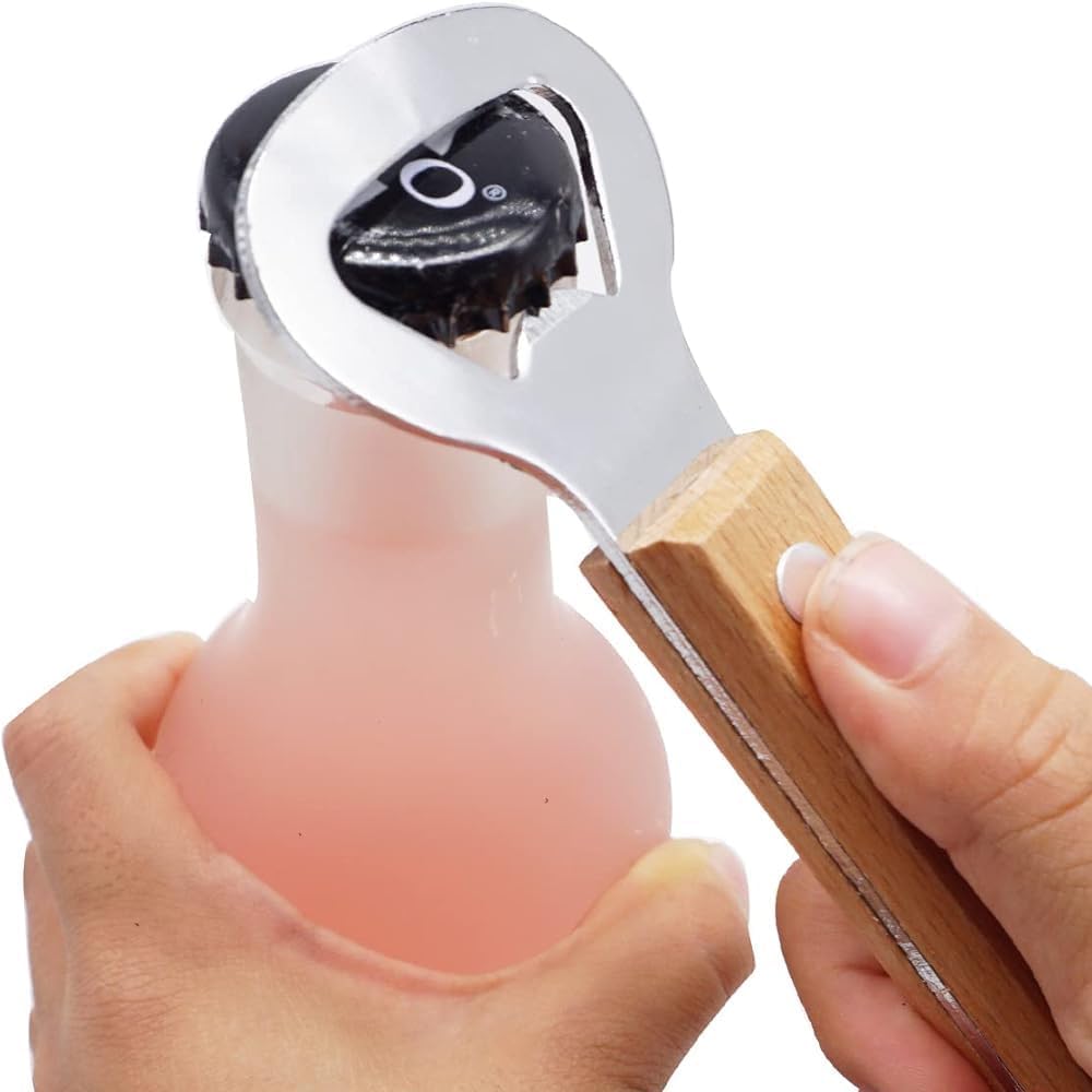 Dual-Head Bottle & Can Opener – Premium Stainless Steel with Wooden Handle – Essential Kitchen Tool for Effortless Opening of Bottles and Cans