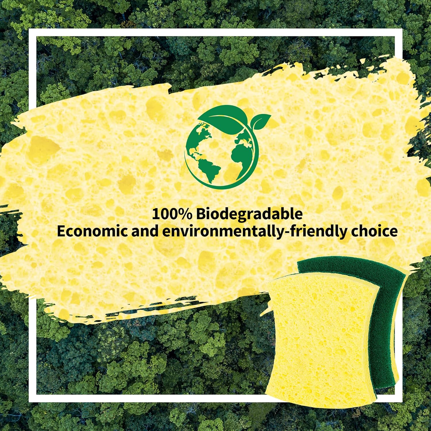 HOMERHYME Heavy Duty Scrub Sponge 24 Pack, Eco Cellulose Kitchen Dish Sponge Multipurpose Ergonomic for Washing Dishes, Uncoated Cookware & Household Cleaning.
