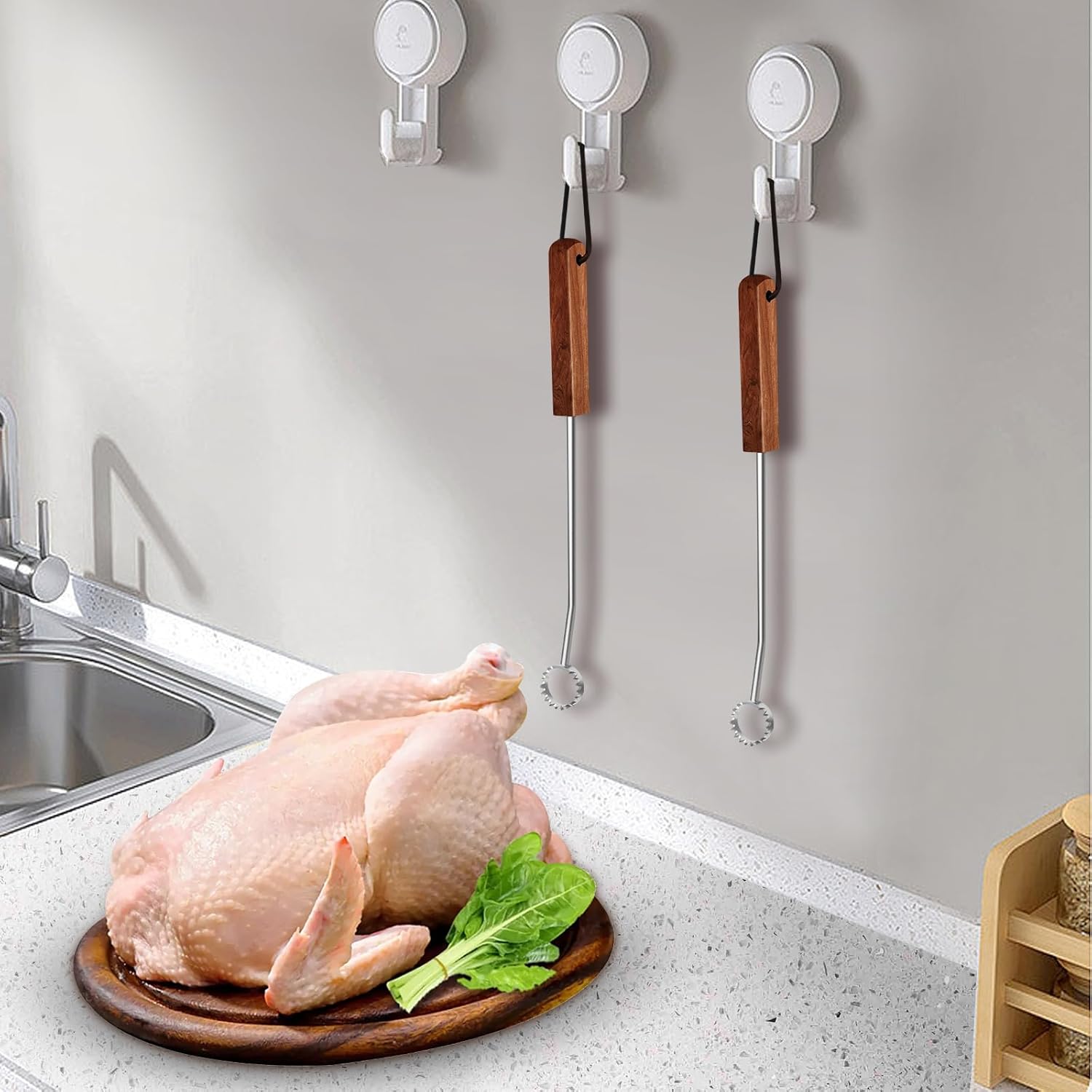 Lung Scraper of Chicken Processing Equipment, Easily Removes Poultry Lungs, Acacia Wood Handle, Chicken Butchering Equipment That Efficient Gutting Tool for Turkey, Chicken