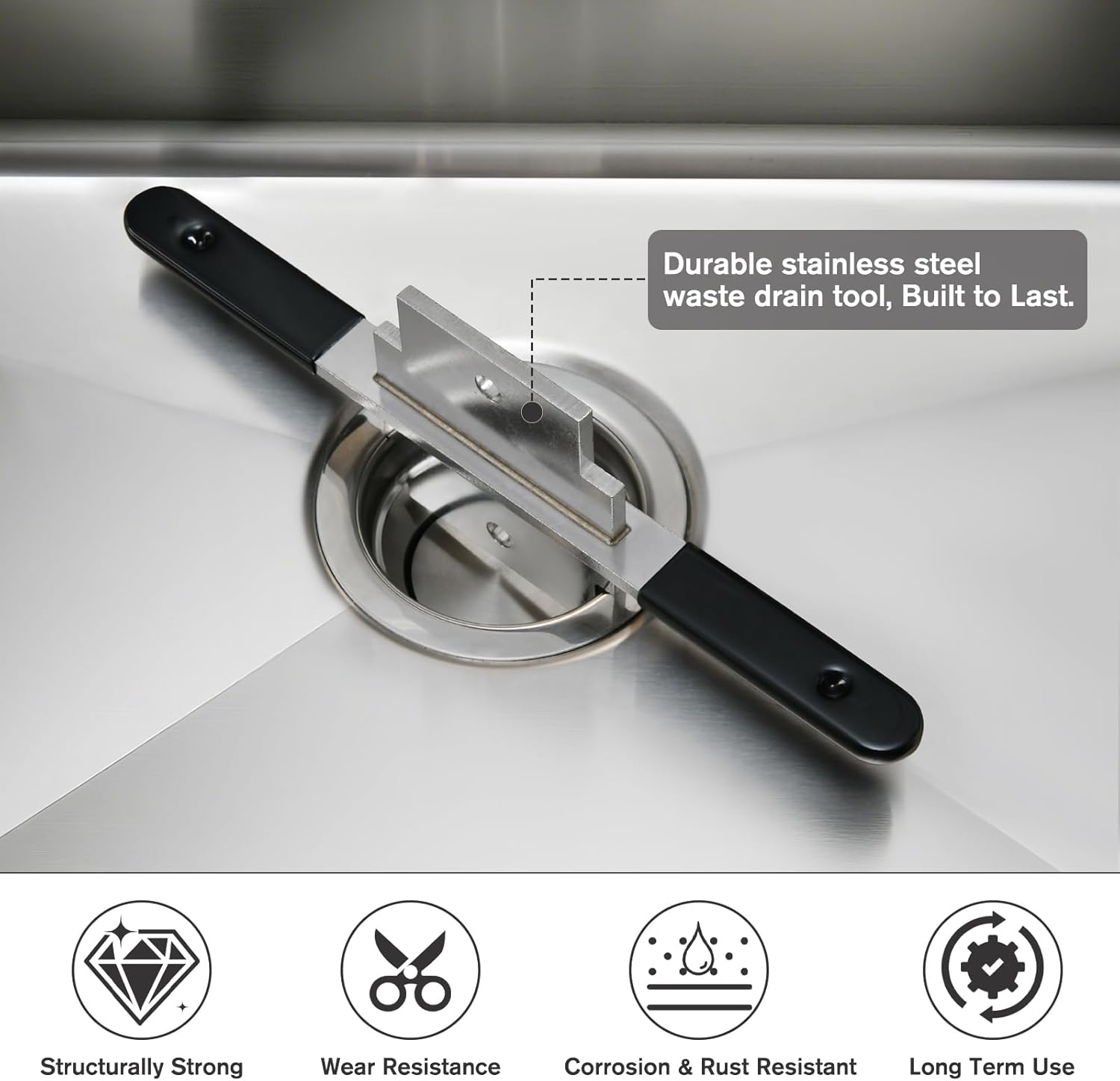 Durable Construction: Waste drain tool is made of high quality solid stainless steel, strong and durable, corrosion and rust-resistant
