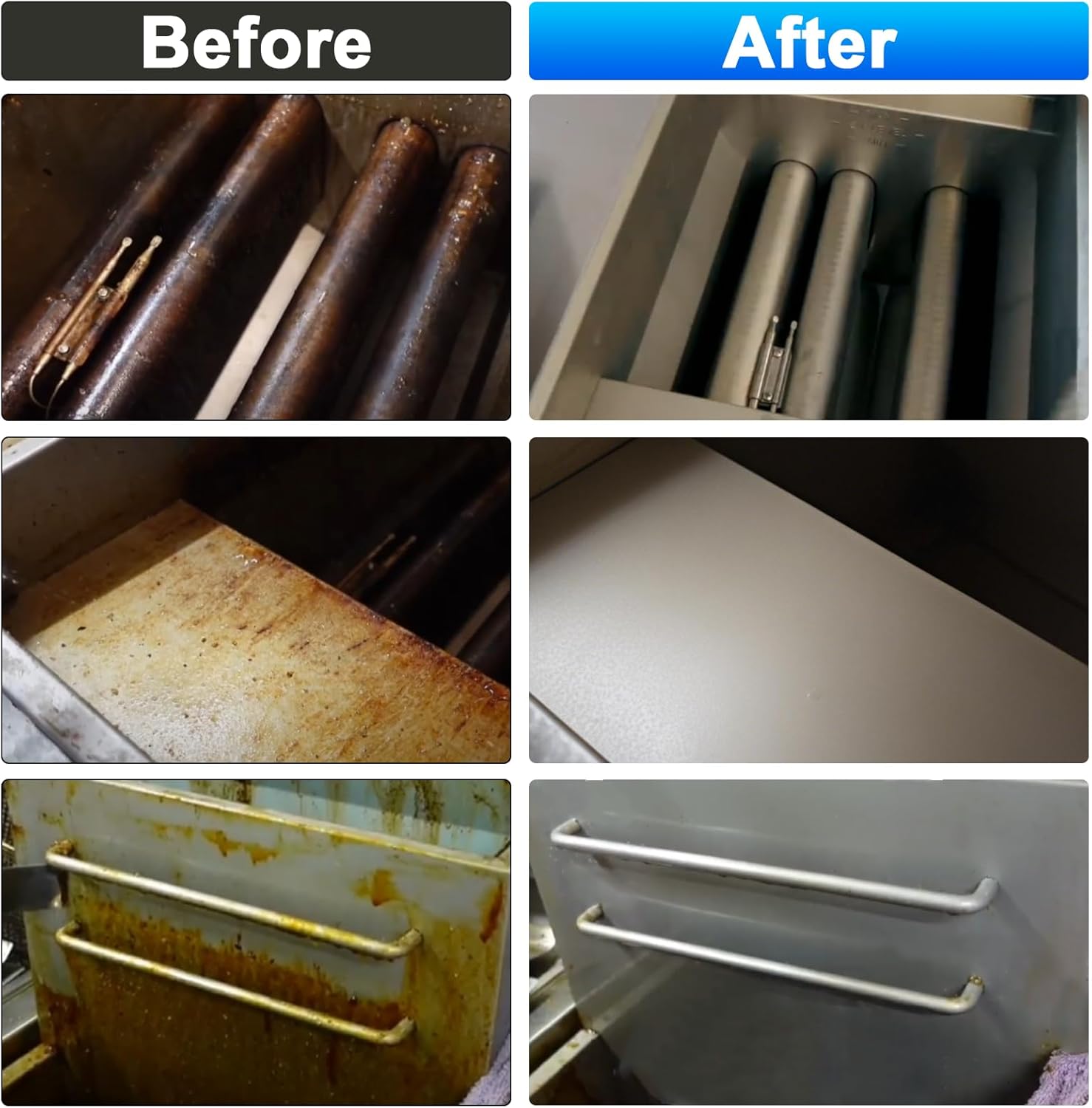 Regular Cleaning to Extend Service Life:Regular cleaning of large fryers with our cleaning kits can effectively remove grease, scorch, and other stains from the frying process, avoiding damage to the fryer caused by the accumulation of stains, thus prolonging the service life of the fryer, reducing the cost of replacing the equipment, and allowing your fryer to maintain optimal working performance for a long period of time.
